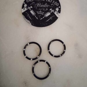 Tytanowy srebrny clicker z podwójną, zakręconą obręczą Jedna obręcz z cyrkoniami, druga gładka.