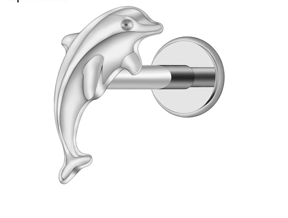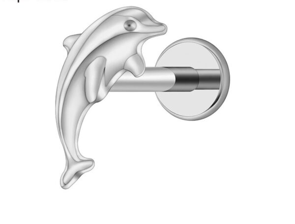 Kolczyk – labret z tytanu 16G w kształcie delfina. Gwint wewnętrzny .