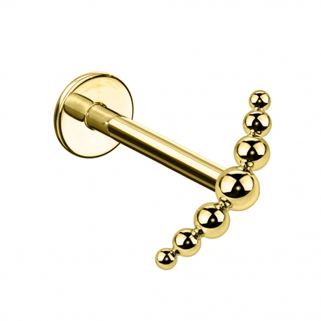 Kolczyk jest w całości wykonany z tytanu, a jego nakrętka składa się z siedmiu drobnych kuleczek ułożonych w łuk. Kształt pozwala na idealne dopasowanie do różnych części ucha.