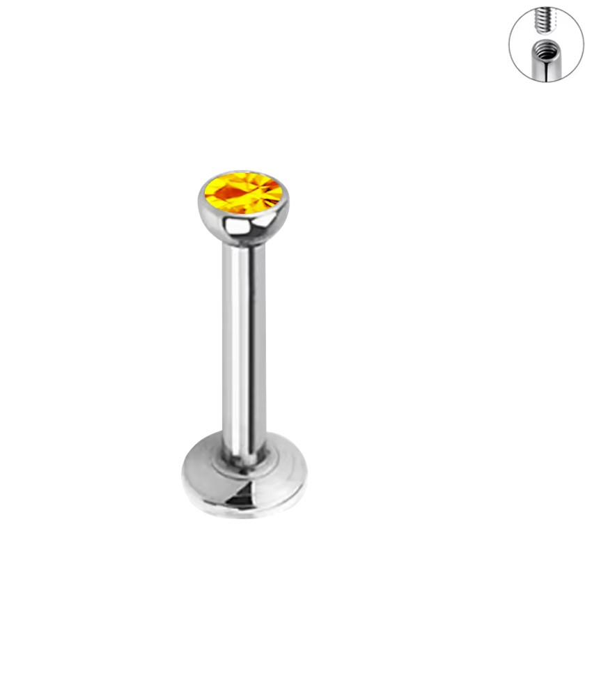 Wysokiej jakości kolczyk ze stali chirurgicznej 316L w kolorze srebrnym ze złotym kryształem. Ozdoba posiada gwint wewnętrzny.
