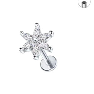 Kolczyk – labret kryształowa śnieżynka 1,2/6